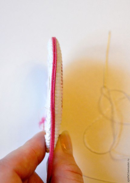 Саму булавку крепим на клей к картону. Для того что бы она держалась прочнее – пришиваем её нитками.