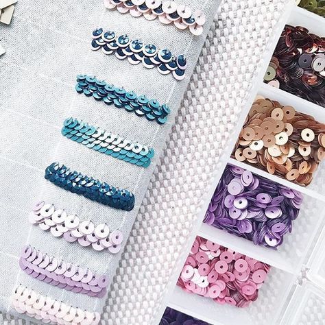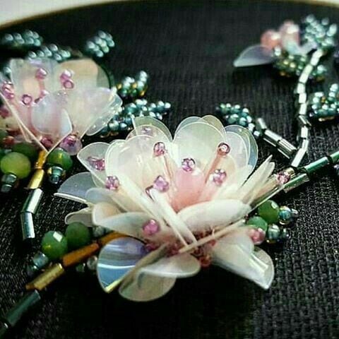 Сегодня мастерицам предлагается множество пайеток разного размера, цвета и формы. Можно выбрать классические круглые элементы, а можно взять выпуклые многоугольные пайетки для объемной вышивки.
