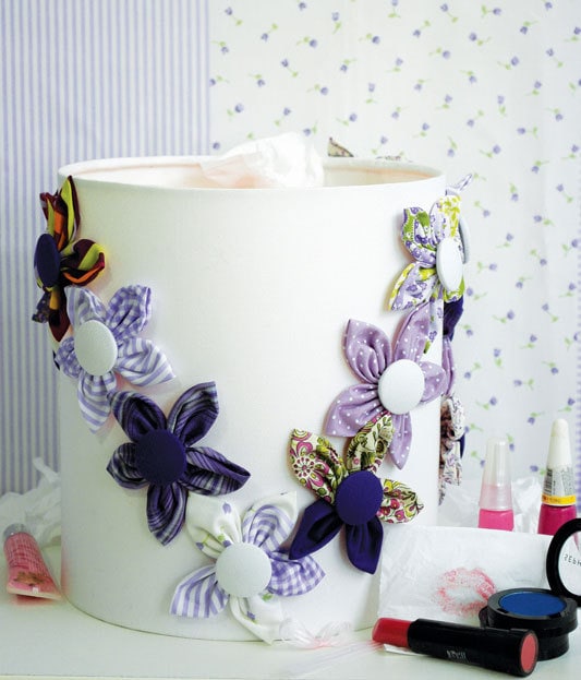 Такими чудесными объёмными цветами из ткани можно украшать практически всё: блузы, сумки, заколки, открытки, подарки, лампы, торты и пр.